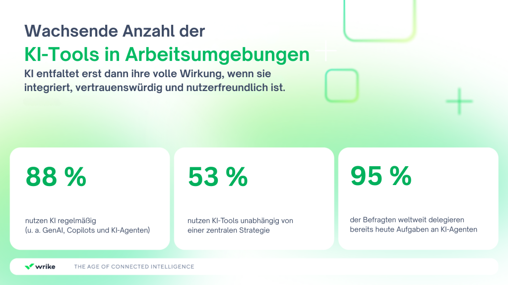 Die Ergebnisse verdeutlichen, dass Integration, Vertrauen und Benutzerfreundlichkeit die Schlüsselfaktoren für den erfolgreichen KI-Einsatz sind. Wrike adressiert diese Anforderungen mit einer Plattform, die Automatisierung, Datenintelligenz und sichere Zusammenarbeit vereint – und Unternehmen so eine belastbare Grundlage für ihre digitale Transformation bietet. Mit Funktionen für automatisierte Workflows, datenbasierte Entscheidungen und sichere Kollaboration schafft Wrike die Voraussetzungen, um den Schritt von punktuellen KI-Anwendungen hin zu ganzheitlich vernetzten Arbeitsumgebungen zu vollziehen.