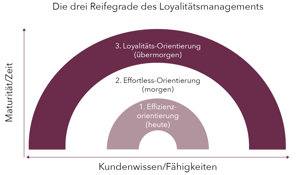 In diesem Schritt hin zu einem Effortless-Orientierten Loyalitätsmanagement, gilt es, die Unternehmensprozesse so anzupassen, dass Friktionen minimiert und friktionshaltige Dialoge mit dem Kunden sogar überflüssig gemacht werden können. Viele Unternehmen in der DACH-Region befinden sich gerade in genau diesem Schritt. Unterstützend dazu wirken zur Zeit vor allem die Befähigung von Mitarbeitenden, den Kunden Probleme fallabschliessend abzunehmen oder vorausschauend zu lösen, sowie dann (ebenfalls KI-gestützt) zu automatisieren, wenn bspw. ein Bot schneller und korrekter antworten kann, als es Mitarbeitende könnten.