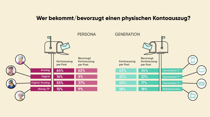 In der Pandemie hat der QR-Code seinen Siegeszug angetreten und ist heute auf jedem Überweisungsträger in der Schweiz präsent. So kann beispielsweise die «analoge Sylvia» mit dem QR-Code eine Einladung zu einem Event scannen und sich so schnell und vom Analogen ins Digitale übergehend anmelden. Auch darf nicht unterschätzt werden, wie viele jüngere Personen der Generation Z noch einen physischen Kontoauszug bekommen und diesen auch wünschen, um die Übersicht zu behalten. Gerade diese Personagruppe ist noch unsicher im Hinblick auf die «richtige» Nutzung von Finanzdienstleistungen. Wichtig ist also, dass alle Schritte einer solchen Reise Empfänger-, Generationen-, Persona- bzw. Clustergerecht gestaltet und getrackt werden (digital und/oder physisch). Hierbei ist jedoch vor allem auf eine angemessene Frequenz (nicht zu häufig) und eine hohe situative Relevanz zu achten. So erwarten Kunden heute werbliche Kommunikation, die auf ihre spezifische Situation abgestimmt sind.