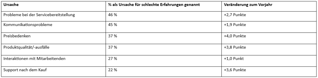 Zwar reduzieren weniger Kunden als im Vorjahr ihre Ausgaben nach einer schlechten Erfahrung, aber die Zahl der Beschwerden über zu hohe Preise ist um 4 Prozentpunkte gestiegen!